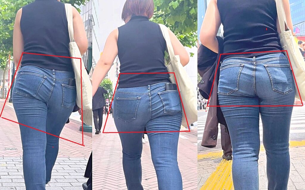 台形型の最大の特徴は骨盤の前が狭いので、腰周りがケツに対して細く見えます。しかし、大抵の台形型のケツは腰周りにもかなり脂肪がついてしまい、台形感が消失しています。